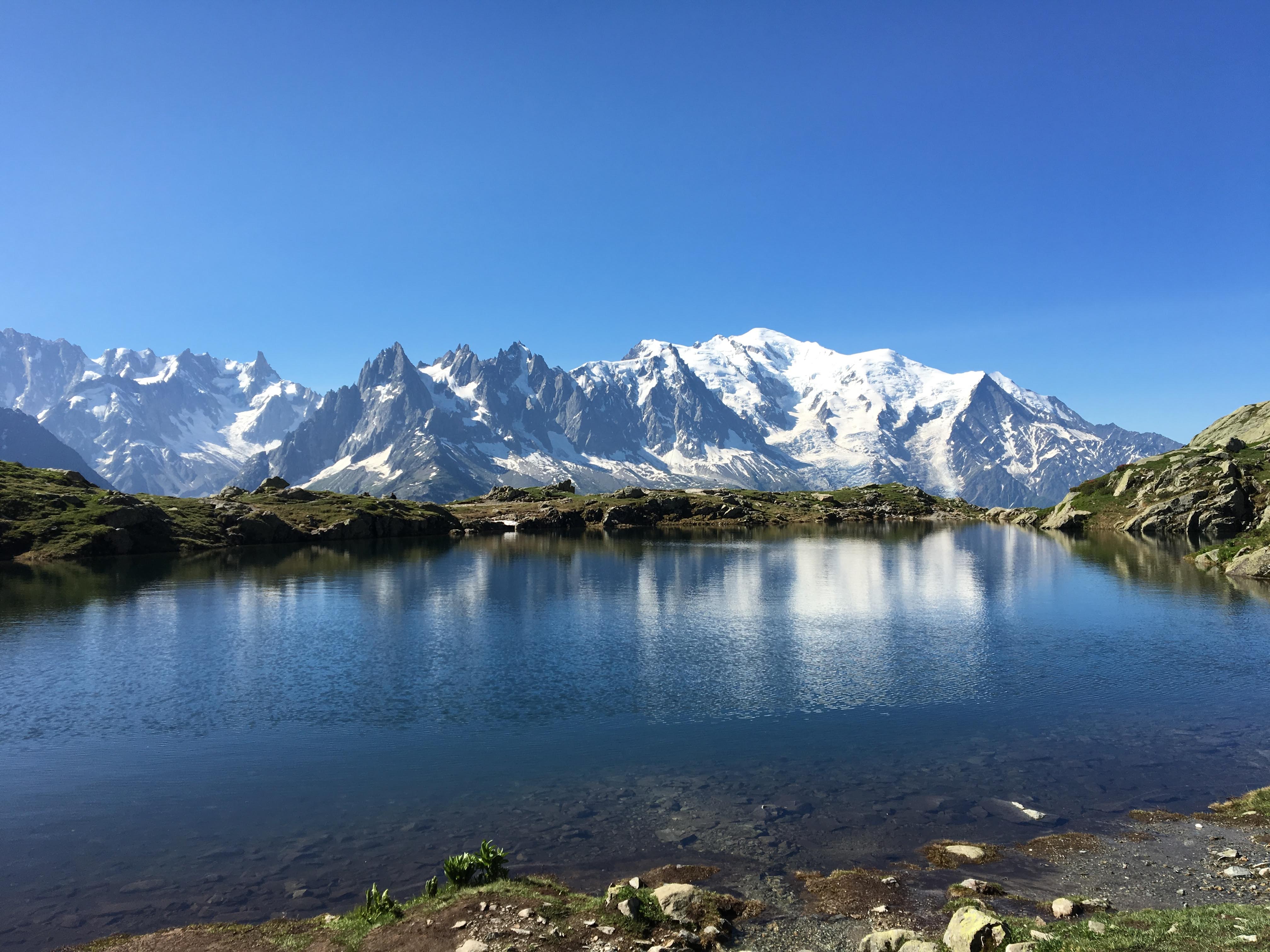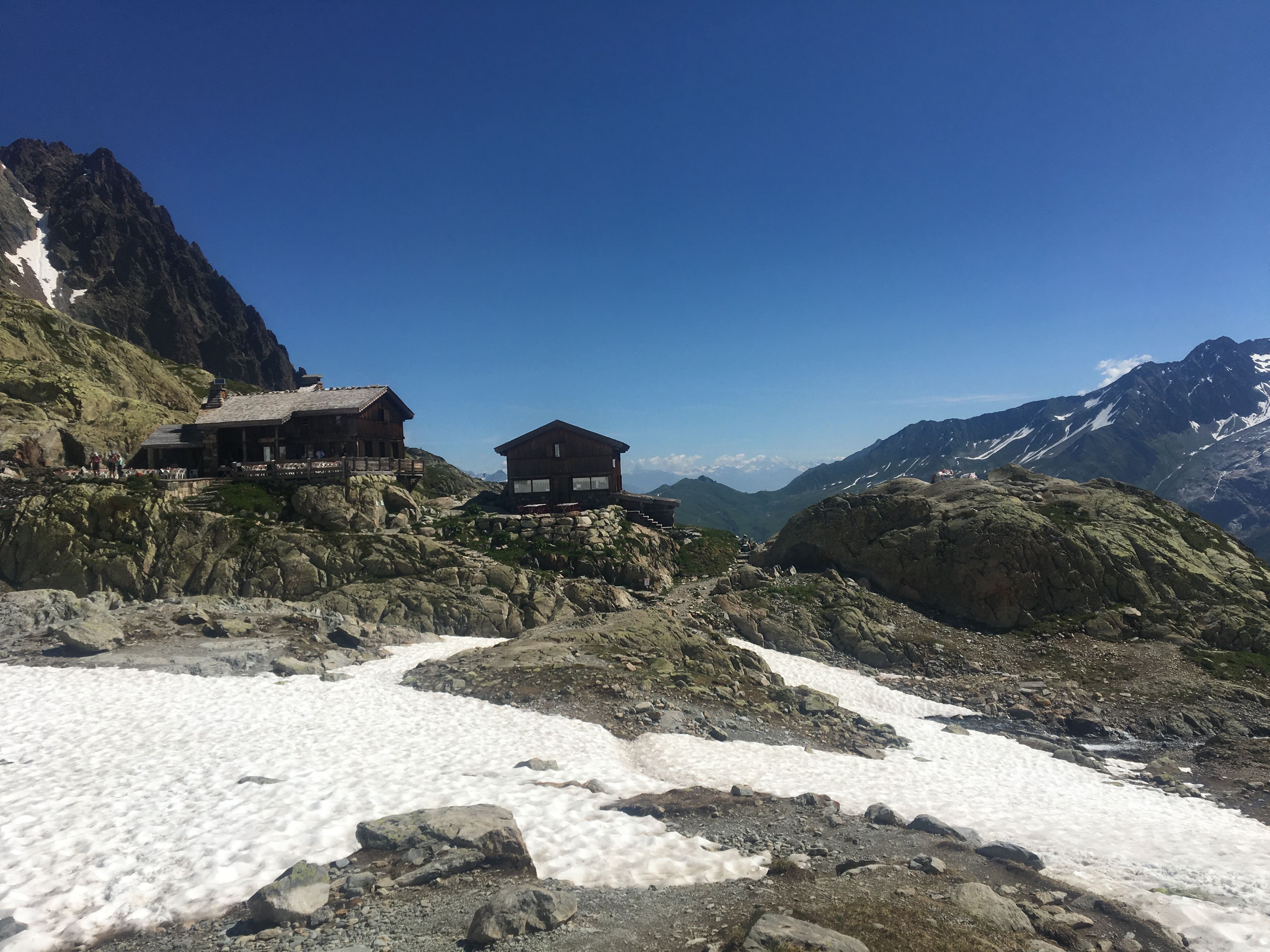 That didn’t dampen my spirits much, because the views were just so pretty. The Lac Blanc variant was definitely tough, but worth it. However, I think most people see the beautiful pictures from Lac Blanc and assume that the lake in it is Lac Blanc itself. For us at least, the Lacs de Cheserys on the way to Lac Blanc were far more beautiful. Lac Blanc itself had a nice refuge with crepes, and was a good vista, but the lake itself was completely covered in snow as of July 5! Note that this refuge, like Refuge du Col du Balme, also cannot guarantee the quality of their water so you should make sure to bring extra on this day.