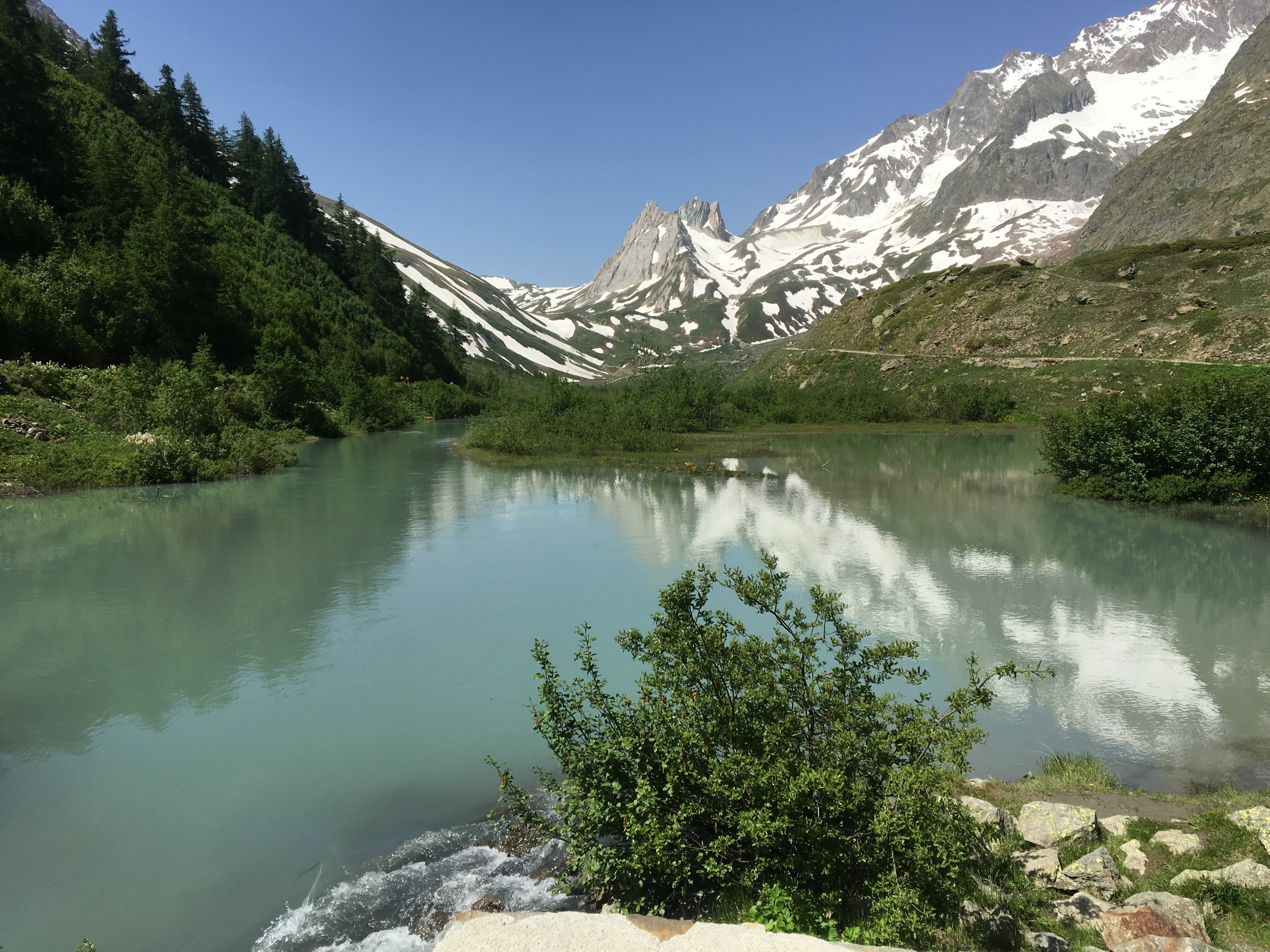 This day I decided to hike with these two other solo hikers. It was a nice change of pace from the two days of hiking solo, though I still greatly enjoy hiking solo! They were going almost all the way to Courmayeur, but I had planned to stop at Cabane du Combal and get to Courmayeur the next day. However, after my poor night’s sleep the previous night, I was itching to get a private room that night, which wouldn’t be possible at Cabane du Combal. So I decided to hike with them all the way to Courmayeur which turned out to be a long but doable day.
