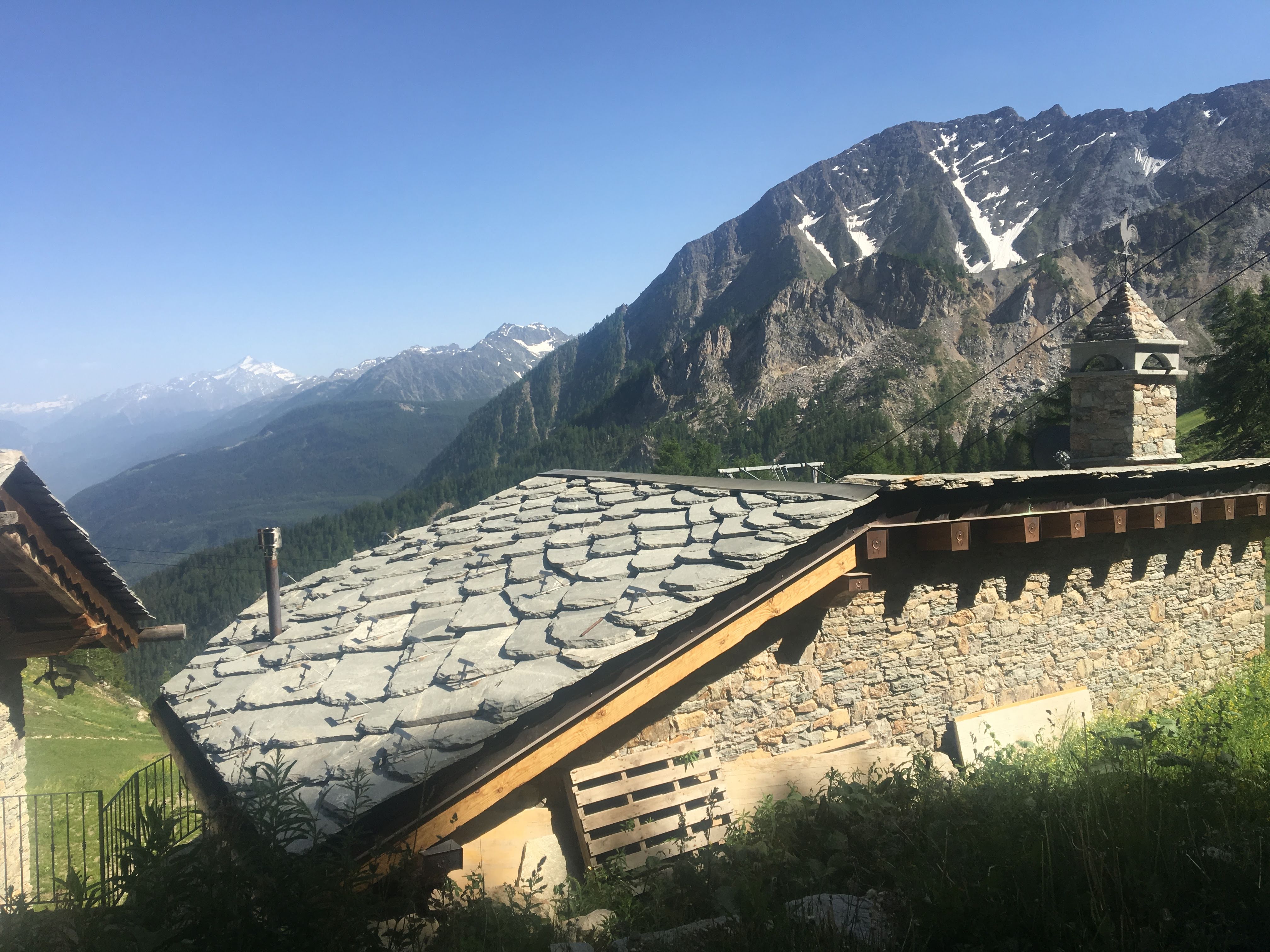 Most of the houses in the Courmayeur area have cool stone roofs like this one.