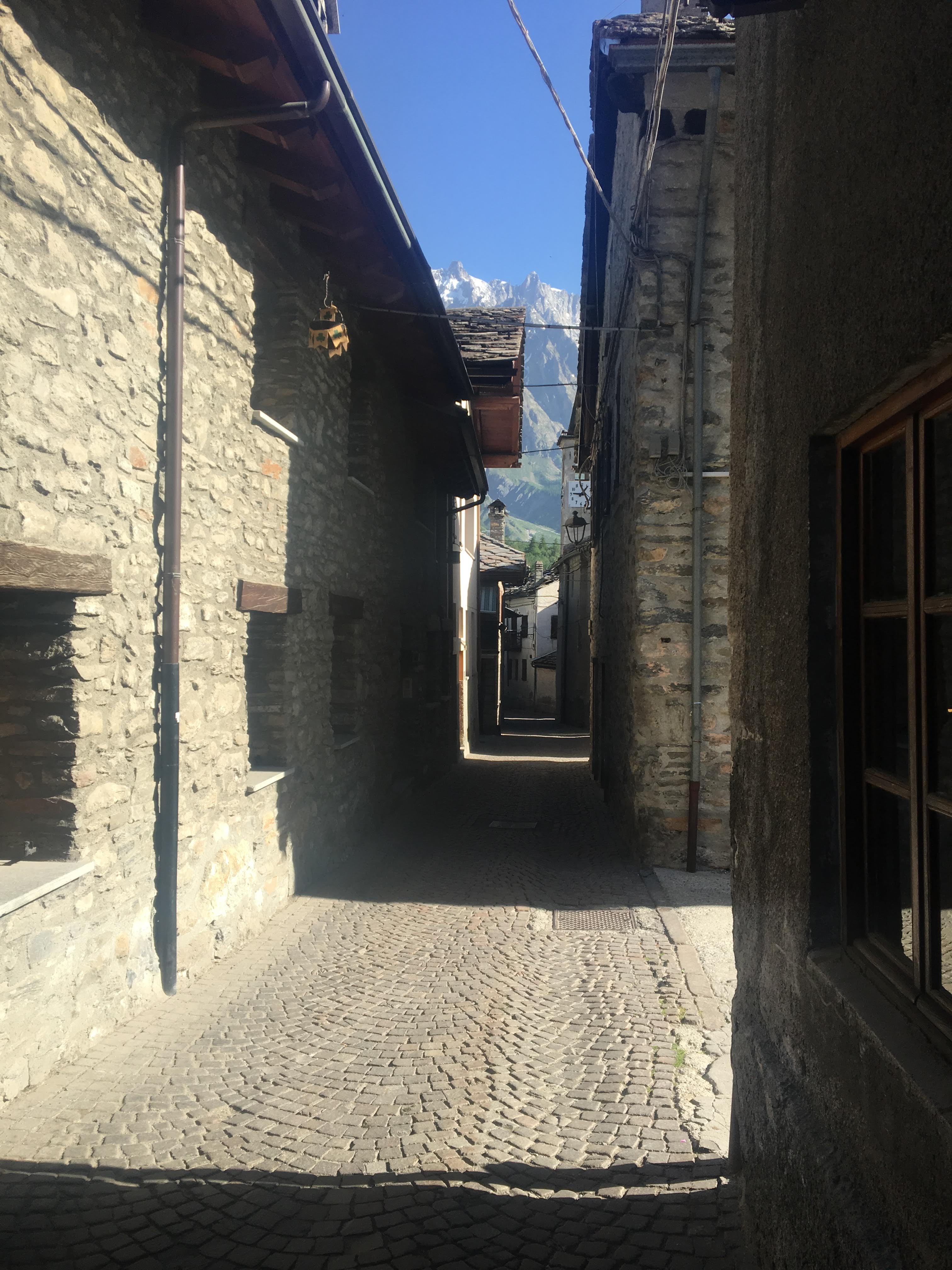 This point I said ciao to the other hikers, who were stopping there for the day. I needed to do the full descent into Courmayeur to get my private room for the night. Dolonne, a small neighborhood of Courmayeur, was described in the book as “an attractive, stone-built village with crowded narrow streets”. This sounded pretty good to me so I decided to stay there for the night.